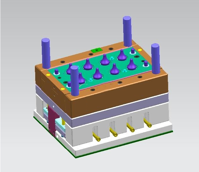 液態(tài)硅膠奶嘴模具結(jié)構(gòu)圖是一款液態(tài)硅膠(LSR)奶嘴模具圖,產(chǎn)品可1出8,1出16等